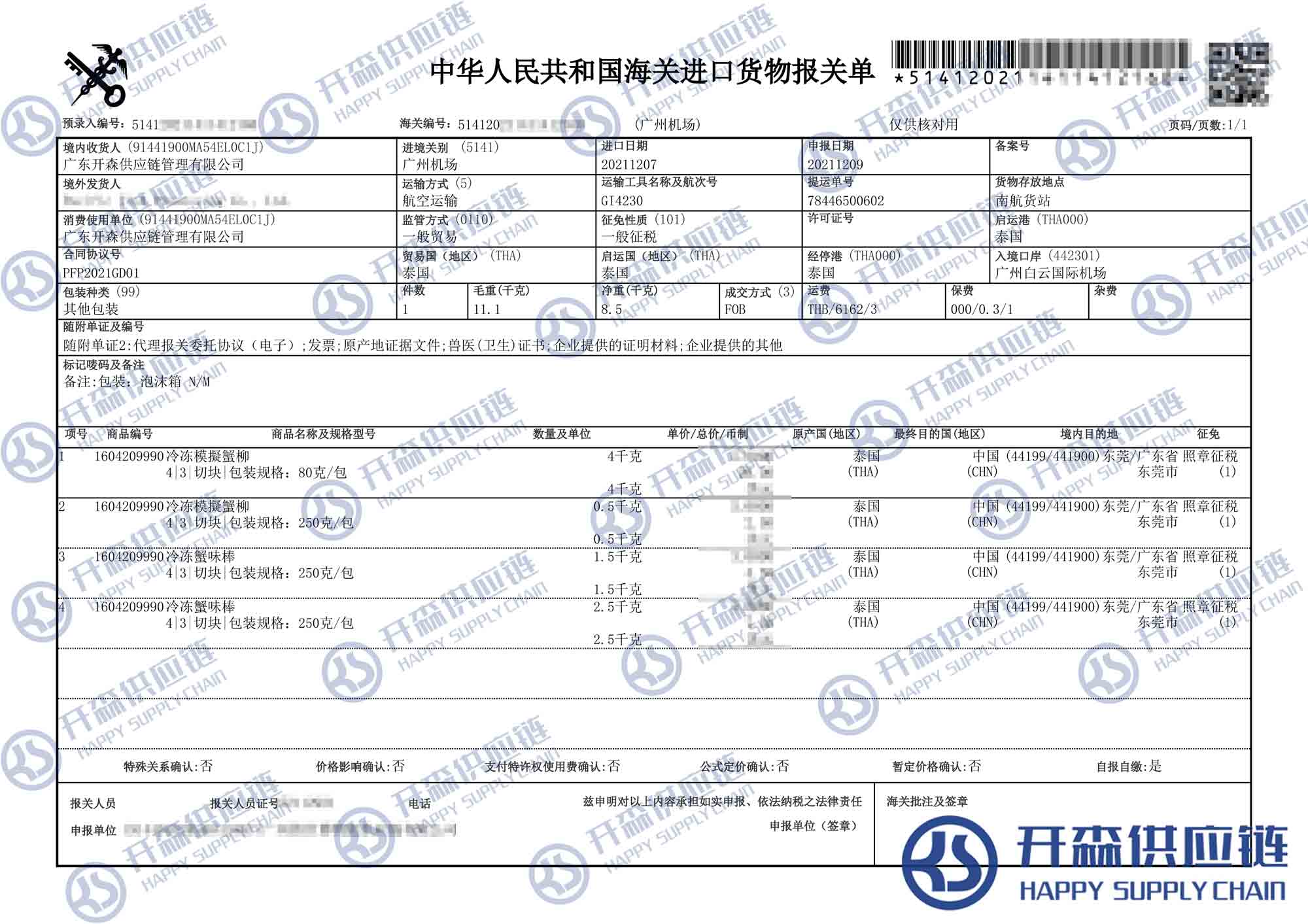 一、泰國蟹柳進(jìn)口報(bào)關(guān)代理案例詳情