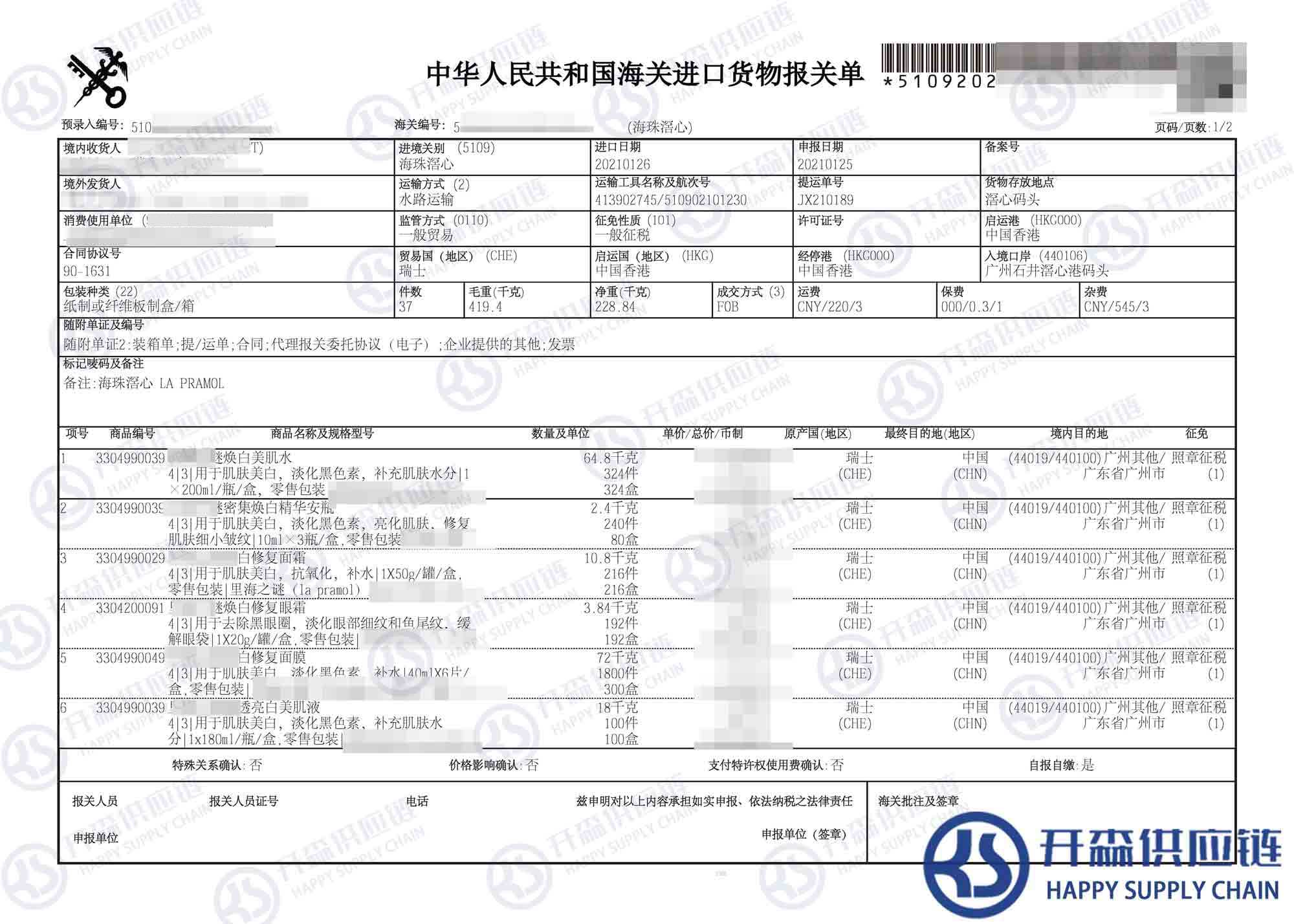 一、面膜進(jìn)口報(bào)關(guān)代理案例詳情