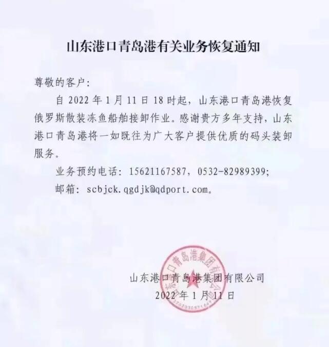 青島港也宣布重新對(duì)俄羅斯散貨船開放,2022狹鱈供應(yīng)有望緩解!